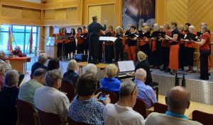 Das Konzert des Haydnchores wurde mit eigenen literarischen Werken von Franziska Bauer bereichert, Ruth Spindler begleitete den Chor am Klavier. Der Chorsänger Uli wurde für seine langjährigen und humorvollen Lesungen beim Chor geehrt. Die Solisten von der ZMS Eisenstadt mußten verletzungsbedingt leider ihren Auftritt absagen.